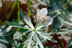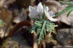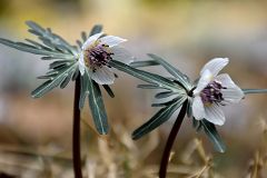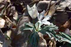 白砂公園を一巡りしてから道の駅龍勢会館で軽く昼食後、石間のフクジュソウ群生地へ、此処では予想外のセツブンソウとの競演に何度もカメラを向ける。我々3名の貸切で思う存分写真に収める事が出来る。その後は四阿屋山中腹の福寿草園(山居広場)を見てから堂上のセツブンソウ群生地へ。花は終盤だが未だ十分見られる花もあり葯が白い花、双子の花、二輪の花等セツブンソウの変種も見られる。