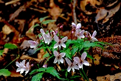 一丁平北巻路のミツバツツジが見ごろで桜は終盤だが何時部見られる足元ではエイザンスミレが多く見られる。山頂で山花友さんとお会いしてビールをごちそうになってから日影沢林道に咲く花を見ながら下る。途中で行き交ったS三と各所で花を見ながら高尾駅まで歩く。