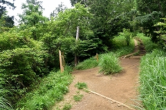 今回もケーブル利用で山頂駅まで行く。平日の月曜日、コロナの影響か人影がない高尾山。緑が濃くなった3号路を行く。本日目的のイナモリソウは咲き始めたばかりで新鮮な花が見られる。高尾山は5号路で巻いて富士見台へ行きツレサギソウを見たが今年は不作で豪華さが欠ける。来年に期待。次の目的地へ、未だに通行止めになっている学習の道の様子を見ながら鉄塔のベンチで小休止。途中2か所で崩落しているところあり注意して通行する。