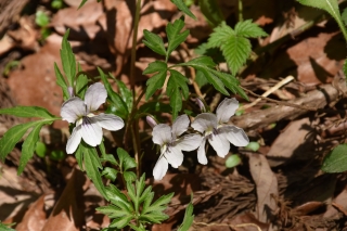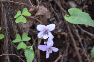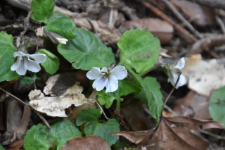 体力と気力の低下でしばらくお休みしていた花見登山を実行する。今日を逃したらスミレの花は見ることができなくなるのではと自己に気合を入れて高尾へ向かう、往路は登りの時間短縮でケーブルを利用して3号路で花探し。期待は外れてスミレ類は終盤で花の色がすべて白くなっている。仕方なく先を行く。もみじ台も日影の北側巻路を行くがやはり3号路と同様できれいな色の花を見ることができず。先の一丁平へも北側の巻路を登り足元の花、特にヒナスミレとエイザンスミレをを見たが同じくきれいな花の色のすみれはみることができず。一丁平から日影沢林道へ下り引き返すことも考えたが一丁平のテーブルベンチでビールを飲みながら昼食後小仏城山へ向かう、途中であきらめていたヒナスミレを見ることができる多少色が薄くなっていたが、早速写真に収めて気をよくして小仏城山山頂に登る。