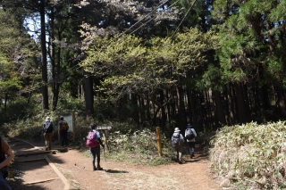 小仏城山へ向かう登山道から振り返り見る高尾山 |