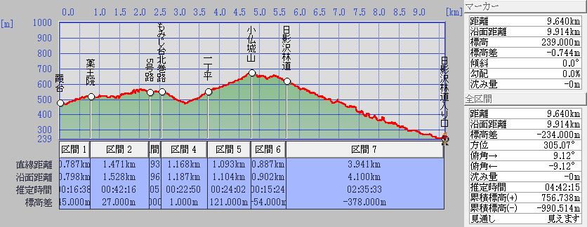 高尾山頂駅→薬王院→五号路→もみじ台→一丁平→小仏城山→日影沢林道→日影沢林道入り口