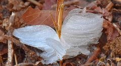 。水分補給も済み次の目的地に向かおうとしているときにOさん達が来て一緒に小仏城山へ向かう。途中で霜の花を見ながら。大きく型の良いものは無かったが何とか今年も霜の花を見ることができる。その後小仏城山山頂で昼食会。今日は主要メンバーは来ていないがタイミング良く来られた方々で用意して来たおしるこ等をを全て消化してもらい持ち帰ることなく済み、本年最後の楽しい登山が出来る。皆さま お疲れさまでした。感謝!! 。。