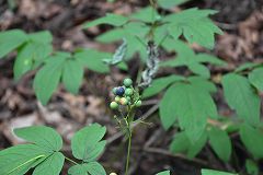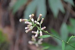 登山コース 軍刀利神社P→軍刀利神社奥の院→女坂分岐→元軍刀利社→軍刀利山→熊倉山→南西尾根→長泉寺→井戸→軍太刀利神社P 先月5月19日に三国山登山 6月16日生籐山 に引き続き三度 三国山登山 今回は熊倉山に登り熊倉山南西尾根を下る。 今回も山友のHAさんのお誘いで軍刀利神社駐車場から登山開始する奥社の所からうっかり沢筋の道に入ってしまい木の枝や蔓類に行く手を阻まれて用意して来た折り畳み鋸を右手に持ち左手にストック二本を持って枝と蔓を切り払って抜け出たががストックの半分の紛失に気付き周りを探したが見当たらないので取り合えづ奥社まで戻りザックとカメラ等を置いて空身で再び沢筋の道に入って行き紛失したストックのを探す 幸いに直ぐに見付ける事が出来て荷物を置いてある奥社に戻る。前回は雨具の亡くした事も有り。これで再び探しに来る必要も無くほっとする。一時間ほど時間んを費やしてしまったが登山を再開する同行のHAさんは男坂ルートを予定していた様だが前回登った女坂ルートで行く事になる。三国山から三頭山に続く笹尾根に出て軍荼利山に向かう。途中で三頭山まで行くと言っていたトレランの男性一人に追い抜かれる。軍荼利山山頂にはベンチが無いので隣の熊倉山に行く先客の方が一人休憩していたので我々も此処で遅い昼食にする。 。 昼食後は我々二人と先客の方(地元のS本さん)と三人で熊倉山南西尾根を降ることにする。S本さんも我々と同様に軍刀利神社の駐車場に車を置いてきているとの事で。このルートは10年ほど前の2013年11月12日単独で登った事があるがあまり良く覚えていない。今回スタート時点で時間をロスした事も有り軍刀利神社の駐車場に戻ったのは17時を過ぎてしまったが無事熊倉山南西尾根を下れた事と地元のS本さんに案内もして頂き予想外の花ギンバイソウ見る事が出来る。同行のHAさんと案内して頂いたS本さんに感謝。 。