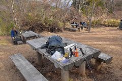 。一丁平でのビール休憩で十分休めたので足取りも軽く小仏城山を目指す。一丁平周辺の霜の華が見られる所を注意深く見たが、やはり気温が高い影響で見る事が出来ず。小仏城山へのルートは直進の階段を避けて今回も巻路ルートを行く。タイミングよく日影沢林道との交差点でKさんと合流出来て小仏城山山頂で昼食にする。山頂には意外と多くの登山者着ている山頂のお店は休業だが多くあるテーブルベンチで30名ほど昼食休憩している。 昼食後の下山は一丁平の展望台を回って一丁平北側の伐採地をKさんの案内で下り日影沢林道に降る。 帰路は今回もKさんの車で高尾駅まで送ってもらい早い時間に帰宅できる。 久々の山歩き、予想外のバリエーションコース等を楽しめる。帰り路では数年ぶりの山友さんともお会いできて今年最後の充実した山歩きになった。