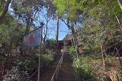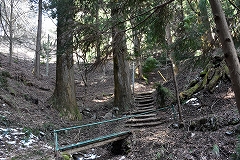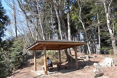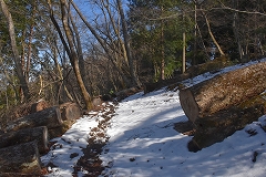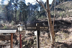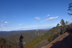 登山コース 林道登山口 →常福院 →高水山→総岳山分岐一岩茸石山→常福院 →林道→林道登山口 予定していなかった山歩き山友のHさんが迎えに来て急遽準備して登山口に向かう。大岳山を予定していたが急遽登山口等の関係で岩茸石山(高水2山)に向かう。 軍畑大橋の駐車場からの登山も検討したが裏側の成木からの林道の駐車スペース(高水山登山口)利用して高水山を目指す。登山口の大きな鳥居を潜ってからは要所要所に3合目、5合目等の石柱が設置されていて多くの信者が常福院詣で登山していた事が偲ばれる。青空の見える晴天で気持ちよく歩ける予想していたが爪得体北風が強く休むことなく淡々と登る。沢の架かる橋を渡り林道に出た所が常福院の山門で階段を登って常福院の境内に入る。 常福院の境内を通過して僅かに登り高水山の陽当りの良い休憩舎で中所にする。冷たい北風も収まり此処ではのんびりと昼食休憩ができる。 時食休憩。 、 のんびりと昼食休憩が出来たので 目的の岩茸石山を目指す、10センチほどの残雪がある山頂を通過して急斜面を下り岩茸石山を直登せず巻路で総岳山分岐点まで行き反対側から岩場の急斜ザイルにつかまりながら登り今回の目的の岩茸石山山頂に到着。冷たい北風も収まり展望の良い山頂でのんびりてしたい所だが早々に下山する。復路は高水山北側斜面の巻路で常福院まで戻り復路は林道を利用して登山口まで戻る。 昨る。