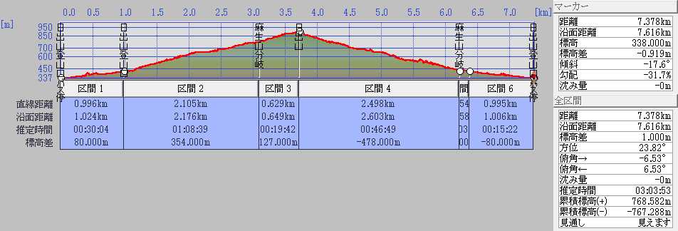 日の出山登山口バス停 →日の出山登山口→麻生山分岐 →日の出山→麻生山分岐一日の出山登山口→日の出山登山口バス停