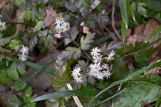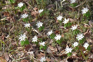 登山コース 小峰公園 →城山登山口→網代城山 →城山登山口→小峰公園⇒戸倉城山テラス(昼食)→光厳寺→戸倉城山→仁田子峠分岐→西戸倉登山口→戸倉城山テラス 本日は五日市の城山、2か所を目標にして初めに小峰公園の駐車場を利用して網代城山を目指す。 標識に従って登山口から山道に入って植林体の長い階段を登り詰めると標高330mの網代城山山頂に出る。 山頂は北東側が開けていてあきる野の街並みが眼下に広がる。数名の登山者がベンチに腰かけて休憩しているので我々も此処で休憩後 往路を引き返す 小峰公園に戻って来たので花の様子を見てくる。セリバオウレンが丁度満開でアズマイチゲも見られる 片栗の花はこれからの様で蕾も見られない。 予想外に花も見られたので次の目標の戸倉の城山に向かう。何時も寄るコンビニで昼食のおにぎりを求めて寄ったが品切れで予定の半分程購入して登山口の戸倉城山テラスに向かう。 戸倉城山テラスに駐車して登山を始めたが直ぐに 此処の食堂で昼食を食べていくことに予定変更。後で解った事だが戸倉城山テラスは休校になった校舎を利用して宿泊可能な施設となっている。 定食を食べて満腹で少々重い体で登山口の光厳寺に向かったが少々路を間違えて戸倉城山テラスに戻って再び光厳寺を目指す。給水塔の脇を通って光厳寺の山門を通過して山道に入る。植林帯の中ゆっくり上って行き山頂近くになると岩場の急斜面の登りを慎重に登り詰めて標高434mの戸倉城山山頂に出る。此処も網代城山と同様に展望がよく眼下に五日市の街並みが良く見える。 展望の良い山頂のベンチで用意して来たコーヒーを飲みながらしばし休憩する。 休憩後 帰りは往路を戻らず西戸倉に降る登山道を降る 直ぐにトイレ舎のある仁田子峠の分岐点標識がある 西戸倉方面に降る こちらは岩場の難所もなく安心してのんびりと歩けて西戸倉登山口に到着 此処から少し車道を歩いて戸倉城山テラスに戻る。 本日は低い山だが二山を登ったので十分歩いたことになる。 再着。