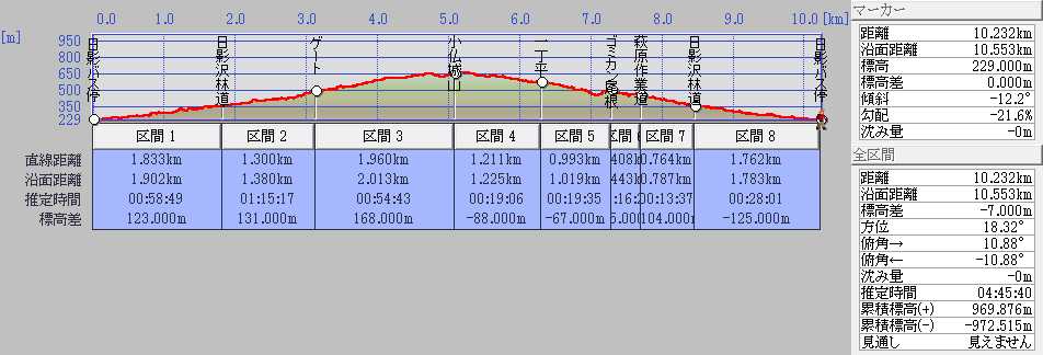 高尾駅⇒日影バス停 →日影沢林道→小仏城山 →小仏城山南巻路→一丁平一ゴミカン尾根→萩原作業道 → 日影沢林道→ 日影バス停⇒高尾駅