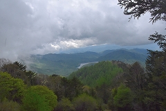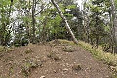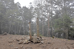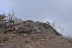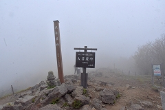 きつい登りを何とか登り稜線上の雷岩にたどり着く。展望を期待してきたが、期待はむなしく消え去る。雲を眺めながら岩に腰を下ろして昼食休憩にする。