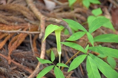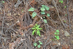 林道歩きがメインで展望がなく足元にはフモトスミレの葉のみで花は全く見られず。