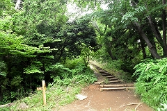 体力の低下と暑いのでケーブルを利用して霞台から登山開始する。木陰の登山道は時折さわやかな風もあり意外と涼しく気持ちよく歩けるが顔から汗が吹き出すので各所で水分補給をしながら行く。